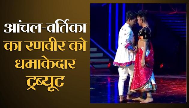 स्टार प्लस पर प्रसारित होने वाला टीवी रियलिटी शो डांस प्लस 4 में इस हफ्ते बॉलीवुड एक्टर रणवीर सिंह और सारा अली खान अपनी फिल्म सिंबा के प्रमोशन के लिए आए। शो में रणवीर सिंह ने चार चांद लगा दिया।शो में ऋषभ शर्मा, वर्तिका झा, आंचल और सुजन ने धामल ही कर दिया। सभी ने रणवीर सिंह और दीपिका पदुकोण को उनकी शादी के लिए ट्रिब्यूट दिया। चोरों कलाकार ने फिल्म रामलीला और बाजीराव मस्तानी के गाने पर जैसे धमाका ही कर दिया। रणवीर सिंह, सारा, सुपर जज रेमो डीसूजा, पुनीत, शक्ति और धर्मेश सभी अपनी सीट छोड़ कर उठ खड़े हो गए। ऋषभ ने ततड़-ततड़ गाने पर, वर्तिका ने ढोल बाजे गाने पर तो वहीं आंचल और सुजन ने लहु मुंह लग गया गाने पर धमाकेदार डांस किया। इसके बाद चारों का डांस डायलॉग के साथ लाल इश्क गाने पर खत्म हुआ। इस धमाकेदार डांस परफॉर्मेंस के बाद रणवीर ने कहा ये फरमॉर्मेंस मेरे लिए काफी स्पेशल था। बता दें कि ये चारों कलाकार शो के टॉप-8 में पहुंच चुके हैं। इस एपिशोड में टॉप-8 के लिए दो और डांसरों का चयन किया गया। गौर हो कि सुजन नेपाल के रहने वाले हैं। वहीं आंचल सरगम मालाकार असम के जोरहाट की रहने वाली हैं। यह डांस प्लस का चौथा सीजन है। शो के जजों में रेमो डिसूजा, धर्मेश, पुनीत और शक्ति मोहन हैं। वहीं शो के होस्ट राधव हैं।