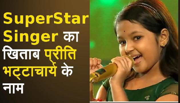 सोनी टीवी पर बेहद पापुलर शो सुपर स्टार सिंगर सीजन 1 में कोलकाता की 9 साल की प्रीति भट्टाचार्य विनर बन चुकी हैं। सुपर स्टार सिंगर के सुपर फिनाले में प्रीति को विनर घोषित किया गया है। मुंबई में हुए सुपर फिनाले के लिए आए करीब 1 करोड़ वोटों के बीच ये फैसला किया गया। विनर को ट्रॉफी के साथ 15 लाख रूपये भी मिले। करीब 15 हफ़्तों तक चले इस शो में प्रीति भट्टाचार्य, मौली, स्नेहा शंकर, हर्षित नाथ, अंकोना मुखर्जी और निष्ठा शर्मा को ग्रैंड फिनाले तक पहुंचने का मौका मिला। इन 6 कंटेस्टेंट ने अपने-अपने टीम के कप्तानों नितिन कुमार, सलमान अली, ज्योतिका तंगरी और सचिन वाल्मीकि के साथ मिल कर परफॉर्म भी किया। ये शो 2 से 15 साल तक के बच्चों के सिंगिंग टैलेंट को दुनिया के सामने लाने के लिए शुरू किया गया है। इस मौके पर शो के तीनों जज हिमेश रेशमिया, अलका याग्निक और जावेद अली के साथ लक्ष्मीकांत प्यारेलाल जोड़ी के प्यारेलाल और अनु मलिक स्पेशल गेस्ट के तौर में मौजूद थे। शो में कंटेस्टेंट और उनके मेटर्स ने भी परफॉर्म किया, जिसके बाद नितिन कुमार को शो का बेस्ट कैप्टन चुना गया।इतना ही नहीं द कपिल शर्मा शो के कृष्णा अभिषेक और कीकू शारदा ने भी परफॉर्म किया। बात करते हैं असम के हर्षित नाथ की तो शो में हर्षित का सफार शानदार रहा है। वो शो में एक के बाद एक धमाकेदार परफॉर्मेंस देते नजर आए हैं। हर्षित जब से शो में आए हैं उनके अंदर काफी प्रोग्रेस देखने को मिली। उनका एक भी परफॉर्मेंस ऐसा नहीं रहा है जिसमें जजेज और शो में आए गेस्ट ने उनकी तारीफ ना की हो। शो में लगभग हर हफ्ते उन्हें स्टैंडिंग ओवेशन भी मिला है। साथ ही उन्हें कई बार सुपर मेडल्स भी मिल चुके हैं। अपने परफॉर्मेंस की बदौलत हर्षित ने न केवल असम बल्कि देश के करोड़ों लोगों के दिलों में जगह बना ली है। वहीं विजेता प्रीति की बात करें तो प्रीति का भी सफर शो में शानदार रहा है। बता दें कि हर्षित और प्रीति ने शो में कई डूएट परफॉर्मेंस दिए थे। साथ ही दोनों बच्चे नितिन की टीम से हैं।