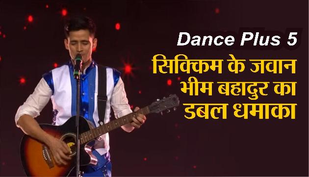 स्टार प्लस (Star Plus) पर प्रसारित होने वाले डांसिंग रियलिटी शो डांस प्लस 5 (Dance Plus 5) में सिक्किम के रहने वाले आर्मी के जवान भीम बहादुर छेत्री (Bhim Bahadur Chettri) ने अपने डांसिंग से धमाका ही कर दिया। 7 दिसंबर को प्रसारित एपिसोड में भीम ने शानदार परफॉर्मेंस दिया। इस एपिसोड में कैप्टन करिश्मा चौहान के चैलेंज राउंड में भीम और सीजन 4 के डांस क्रू गैंग 13 के बीच धमाकेदार टक्कर हुई। इस एपिसोड में कोरियो ग्राफर टेरेंस लुईस और गीता कपूर गेस्ट के तौर पर आए थे। भीम और गैंग 13 के क्रू ने पहली बार है पहली बार है जी गाने पर धमाकेदार परफॉर्मेंस दिया। परफॉर्मेंस के दौरान सभी जज वाह-वाह करते नजर आ रहे थे। कैप्टन पुनीत ने इस परफॉर्मेंस को स्टैंडिंग ओवेशन दिया। साथ ही सभी ने भीम की खूब तारीफ भी की। शो में आई गेस्ट गीता कपूर ने भीम की खूब तारीफ की। गीता के अलावा रेमो ने भी भीम की खूब तारीफ की। इस फरफॉर्मेंस के लिए 35 अंक मिले। (भीम के परफॉर्मेंस के बाद कैप्टन पुनीत ने कहा कि भीम का एक और रूप है जो मैंने देखा है। इसके बाद भीम ने अपने सिंगिंग से जजों को हैरान कर दिया। वे एक अच्छे डांसर के साथ सिंगिंग भी करते हैं। भीम ने यारों दोस्ती बड़ी ही हसीन है गाने पर समां ही बांध दिया। भीम सिंगिंग के साथ गिटार भी बजा रहे थे। इस गाने की चंद लाइने गाकर भीम ने अपने सिंगिंस से भी जजों को इंप्रेस कर दिया।)ईस्ट सिक्कम के रहने वाले हैं भीम ईस्ट सिक्कम के एक छोटे से गांव जितलांग के रहने वाले भीम की बेहतरीन परफॉर्मेंस देख दर्शक भी हैरान हैं। आर्मी जवान (Army Jawan) भीम बहादुर छेत्री के डांस को लोग खूब पसंद कर रहे हैं। 25 साल के भीम ने अपने डांसिंग स्किल से सबको चकित कर दिया है। भीम पहले ऐसे जवान हैं, जिन्होंने डांस प्लस (Dance Plus) के मंच पर कदम रखा और ऑडिशन दिया।बता दें कि भीम को डांस का बेहद शौक है और वो उनके लिए पैशन की तरह है। सेना में होने के साथ-साथ वो डांस स्किल पर भी लगातार प्रैक्टिस करते हैं। आर्मी जवान भीम ने अपना जीवन भारत के नाम समर्पित कर दिया है और साथ ही अपने डांस के पैशन को भी जिंदा रखा है। भीम ने अपने जीवन में अब काफी संघर्ष किया है, लेकिन उन्होंने कभी हार नहीं मानी।यह डांस प्लस का पांचवा सीजन है। शो में सुपर जज के तौर पर रेमो डिसूजा है। जबकि इस बार शो में चार कप्टनों को रखा गया है। बता दें कि शो में शक्ति के ना जुड़ने के चलते दो नए कैप्टन को जोड़ा गया है। इस बार शो में कैप्टन के तौर पर धर्मेश येलंडे, पुनीत पाठक, करिश्मा चौहान और सुरेश मुकुंद हैं। वहीं शो को राघव होस्ट कर रहे हैं।